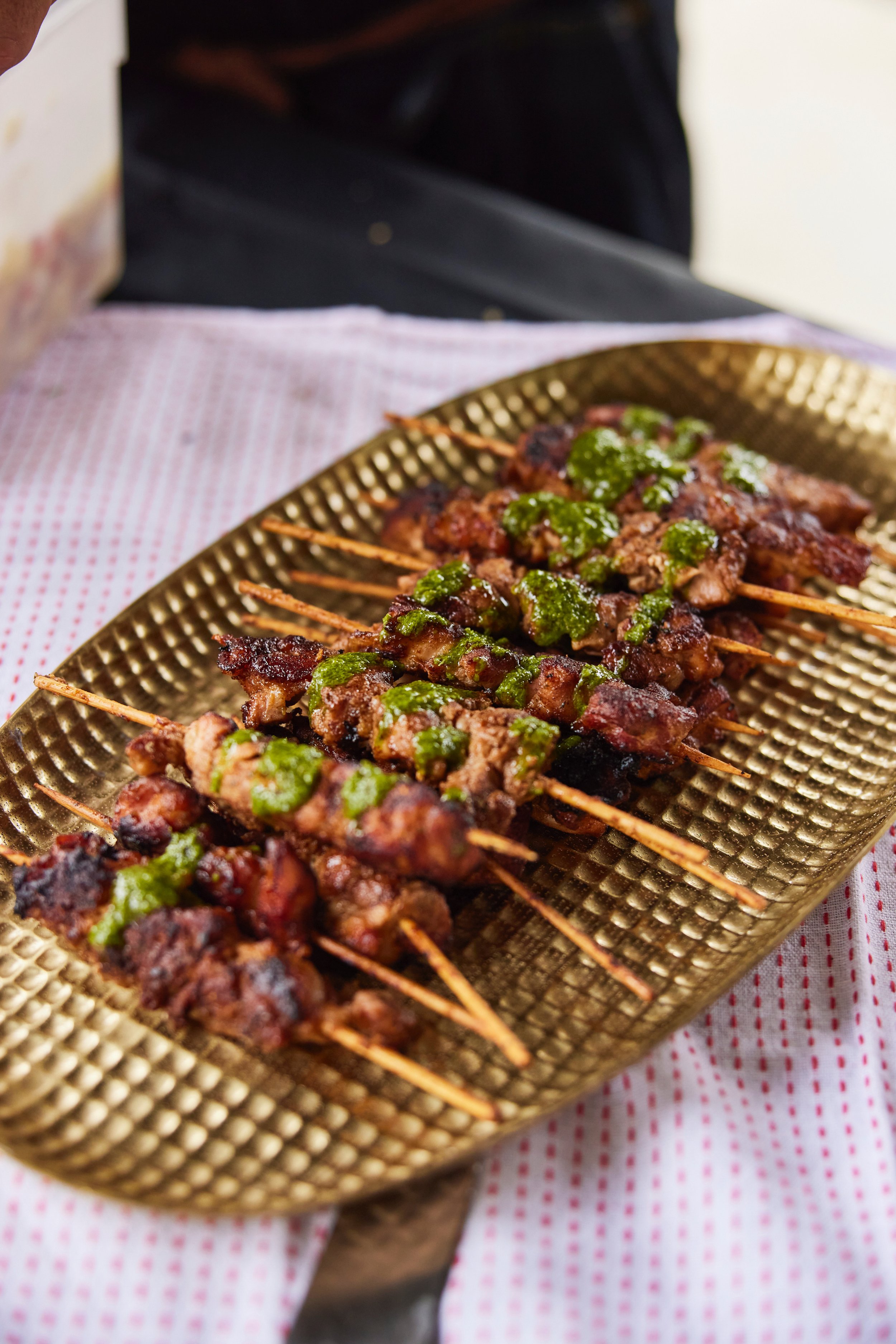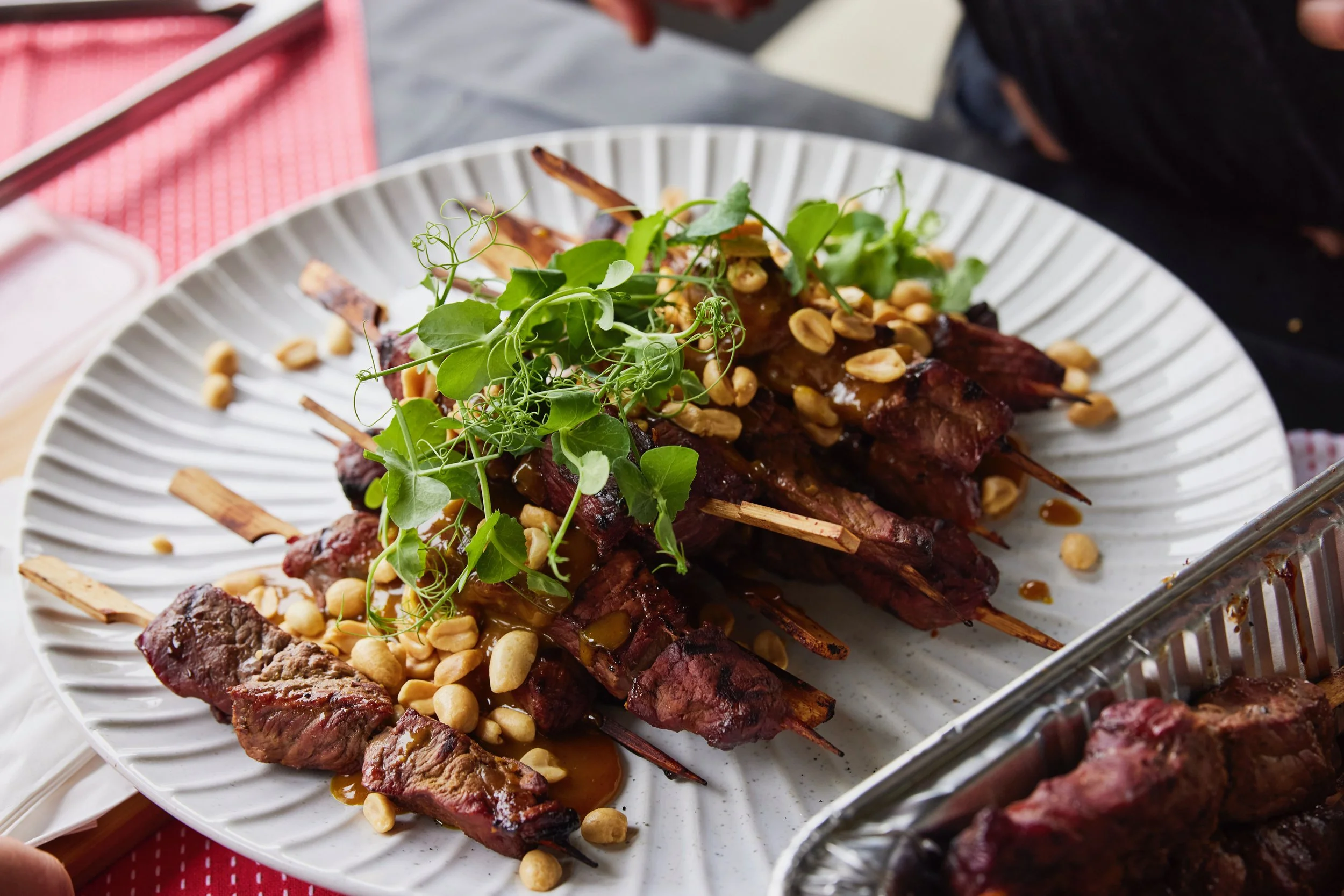 Beef skewer, satay sauce, peanuts, coriander – $8